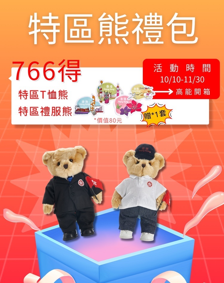 區徽T恤熊+禮服熊 HKD 766,免費獲贈一套精美HK景點魔術貼(價值80元)